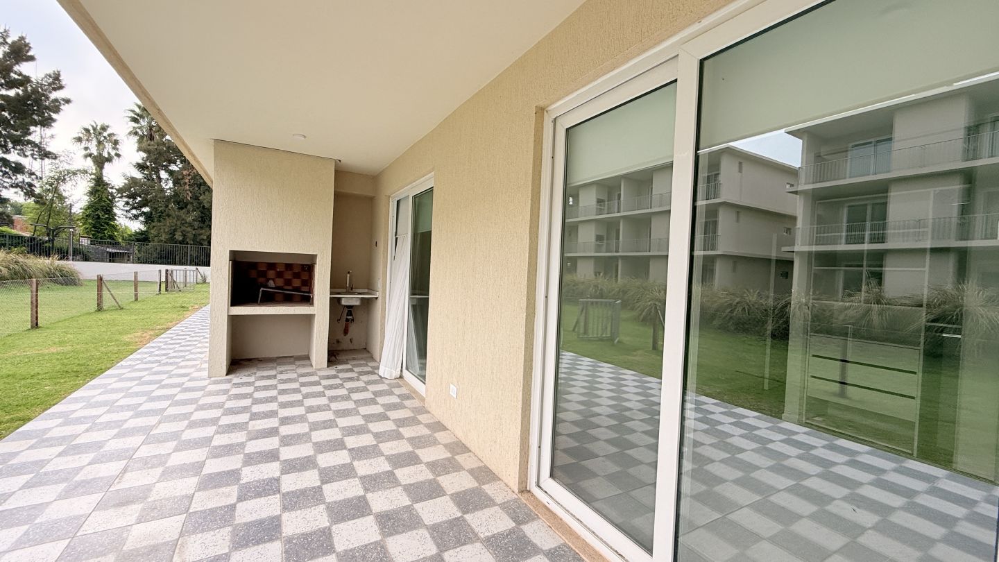 Departamento en alquiler con muebles 3 ambientes planta baja con jardin - Cañada Village
