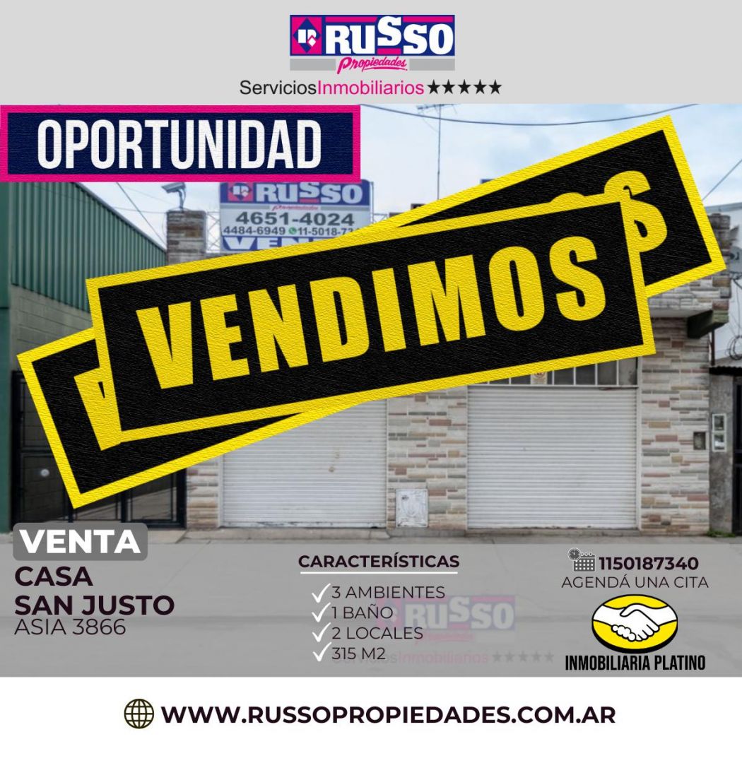 Venta de 2 Locales yPUBLICACION DE INMOCLICK.COM.AR Casa de 3 AmbiSUSTRAIDO DE INMOCLICK.COM.ARentes en SaCOPIADO DE INMOCLICK.COM.ARn Justo, La Matanza